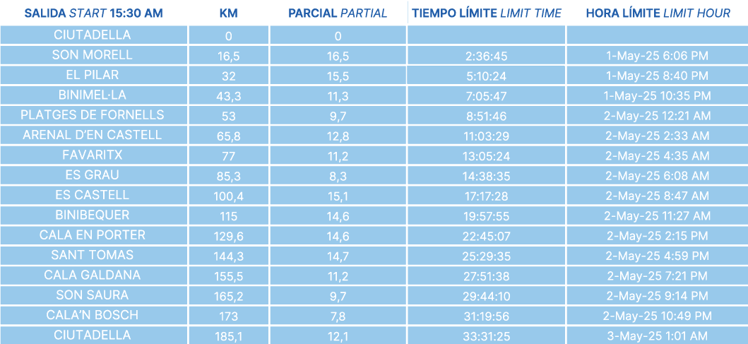 Vivez l’esprit d’équipe dans la modalité relais de 185 km, où la collaboration et la camaraderie sont essentielles pour boucler le tour de Minorque. Chaque membre de l’équipe affronte différents segments du parcours exigeant. Idéal pour ceux qui souhaitent partager l’excitation et les défis du trail running en bonne compagnie.
